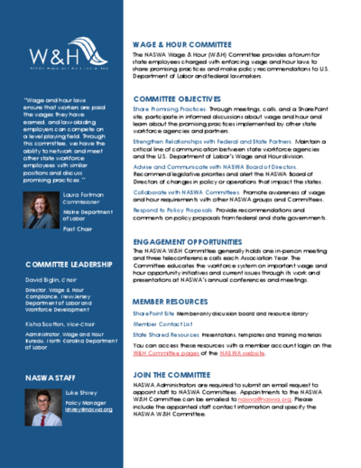 Interested in joining a committee? It’s easy! State workforce agency administrators should submit an email to naswa@naswa.org nominating an individual from their state for a specific committee. This can be done at any time. NASWA strives to have a representative from each state to participate in every policy committee.
